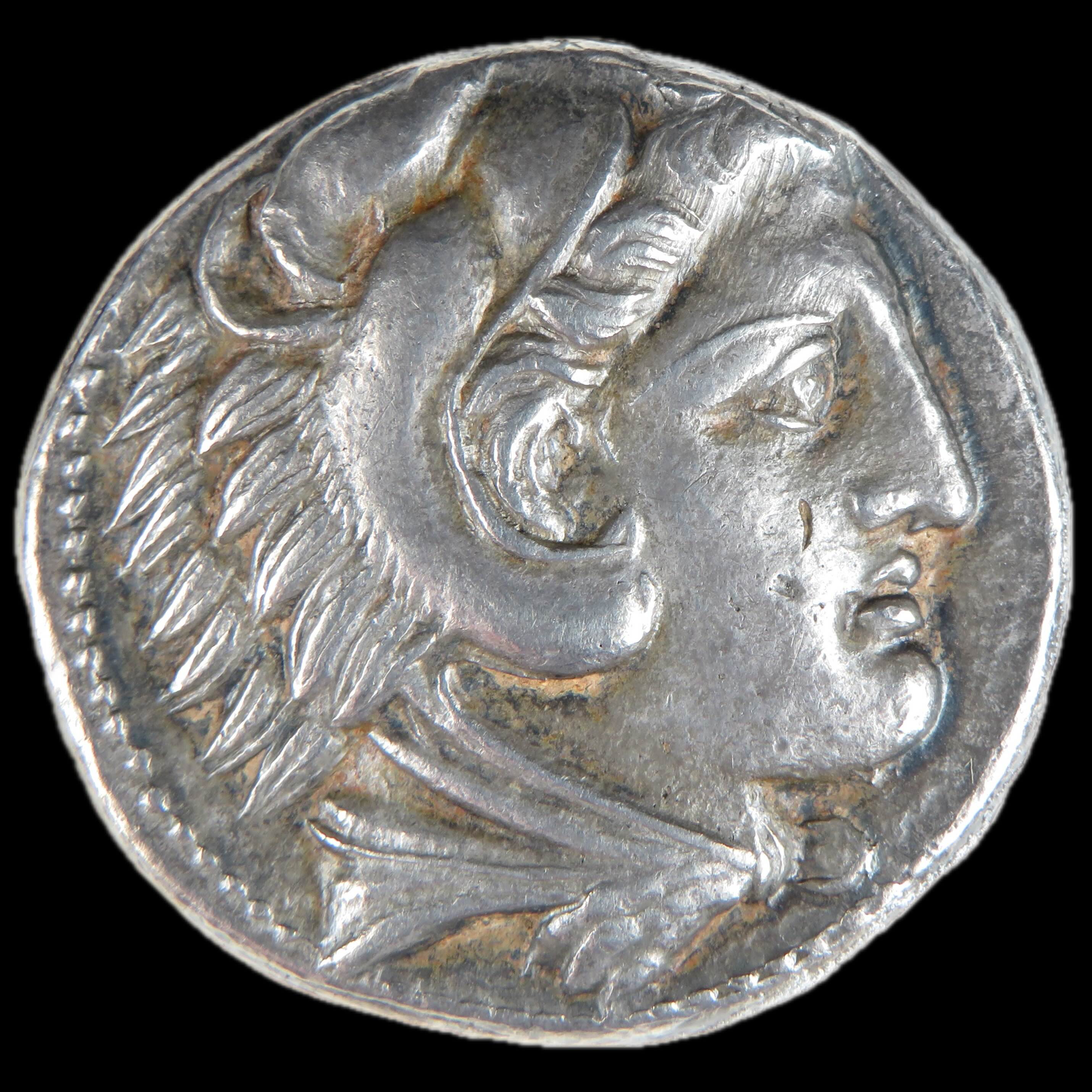 Typical obverse design for Alexander's coinage showing the head of Hercules wearing the skin of the Nemean lion